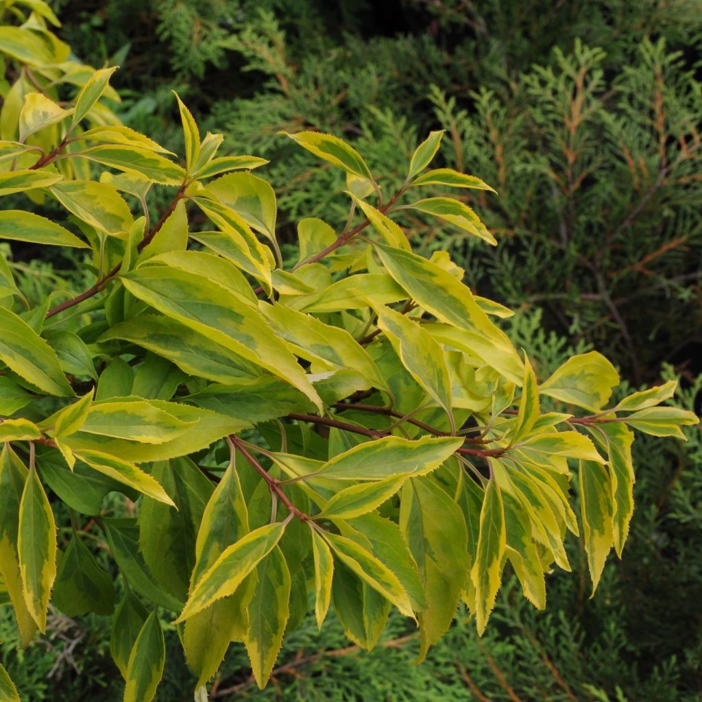 Le Forsythia (x) intermedia Golden Times est un arbuste ornemental, au feuillage caduc, panaché de jaune et de vert, c’est également l’un des premiers à fleurir à la sortie de l’hiver.